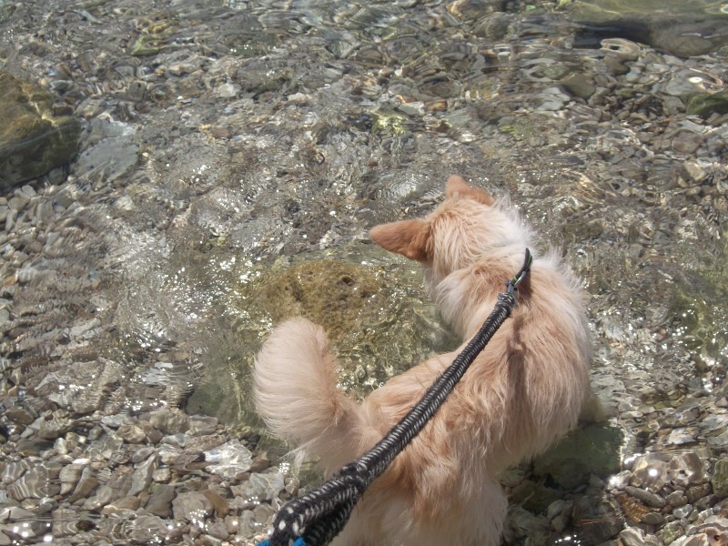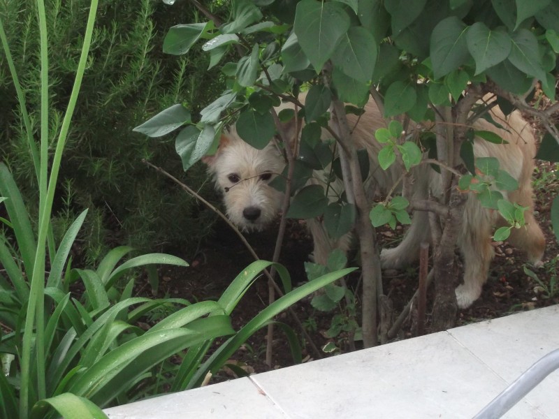 Blonďatá psí slečna dostala jméno JÁJA. Je ukecanější než ségra, zvědavější a daleko zbrklejší. Ale taky je rychlejší při hře nebo při aportování a sem tam se jí (narozdíl od ségry) postaví uši, takže něco ze skotského teriéra tam, kromě barvy, asi bude...